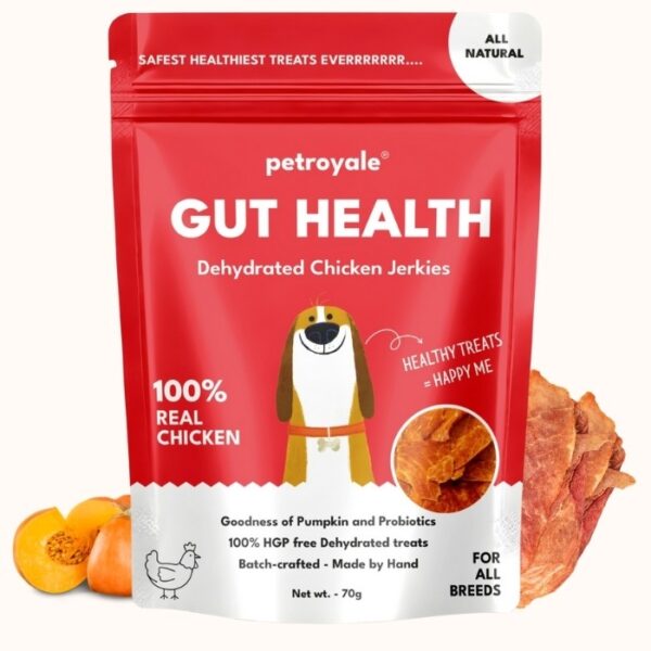 Petroyale Dehydrated Chicken Jerky for Dogs – Gut Health (Pumpkin & Probiotics)
