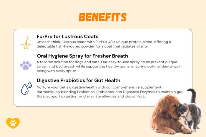 Furpro-40 + Premium Oral Hygiene Spray + Digestive Probiotics for Dogs + Digestive Probiotics for Cats