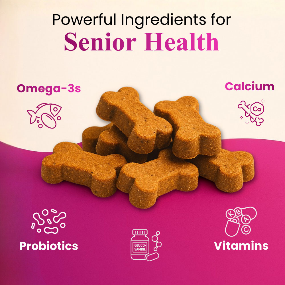 Supports senior dogs’ joints, digestion, immunity, heart, and brain health.